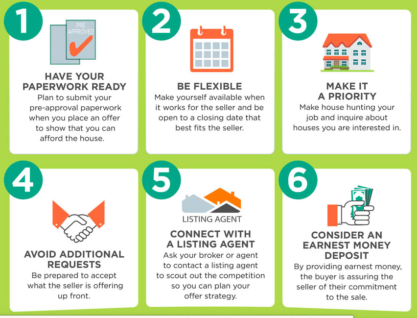 Be sure to work with an agent who knows what they’re doing and can help you create an offer that has a high likelihood of getting accepted.