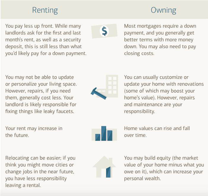 Let’s take a closer look at the pros and cons of each to see whether owning or renting suits you best.