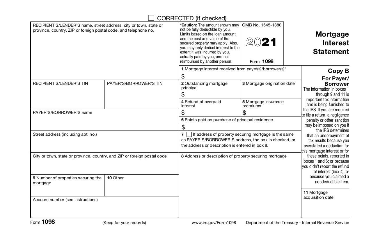 Form 1098 reports how much an individual or sole proprietor paid in mortgage interest during the tax year. Your mortgage lender is required by the IRS to provide this form to you as long as the home is a residence that has been built on, grown on or attached to the land. This is the definition of real property as the IRS sees it.